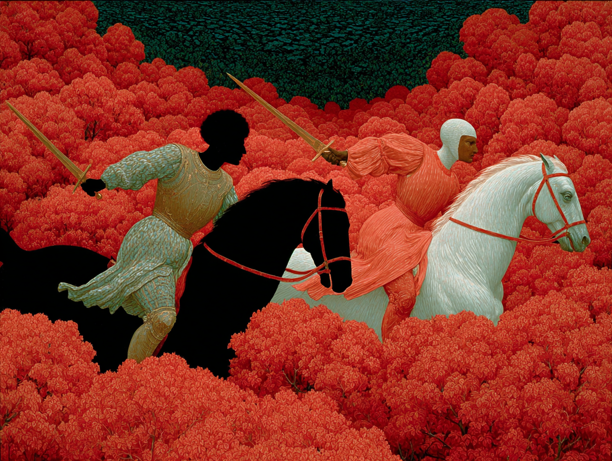 The exhibition features 12 AI-generated artworks centered around four colors: red, yellow, green, and blue. The artists behind the works are: red—WooJeon Park, yellow—Alessandro Bellini, green—Massimiliano Bellini, and blue—Mario Capurro. A black-and-white video by director Andrea Signorini, created with AI and titled “L’Eterno Ritorno,” will also be shown.